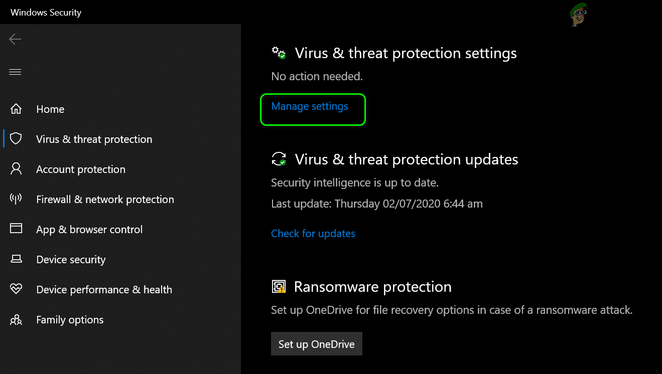 Open Virus & Threat Protection Settings - Now, scroll down till the end and then click on Manage Settings (under Virus & Threat Protection Settings).