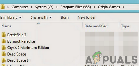 Open the Origin Games Folder - Then open the folder of the problematic game e.g. Titanfall.