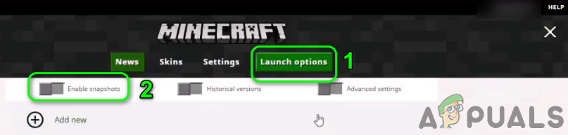 Enable Snapshots for Minecraft - Then click on the Add New.