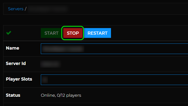 - Open the Control Panel of your server and stop the server.