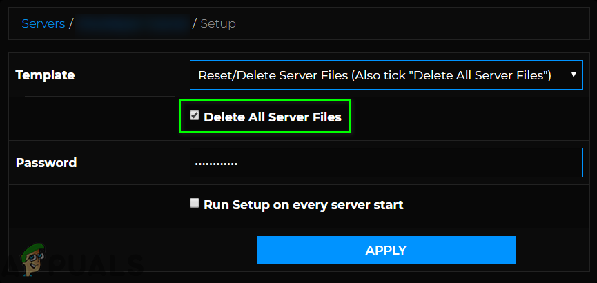 Delete All Server Files - Then click on the Apply button.