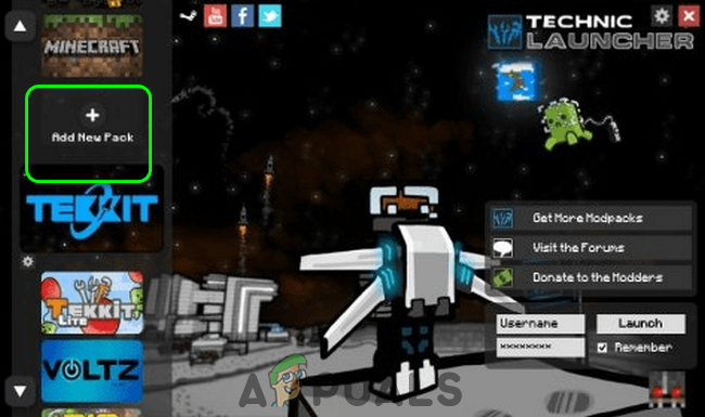 Add New Pack to the Technic Launcher - Now add a new mod pack to the launcher and then launch the game with that mod pack to check if the problem is solved.