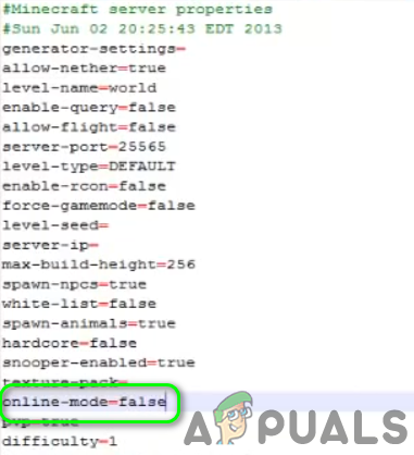 - Now find the Online-Mode entry and change its value from true to False.