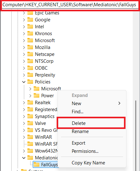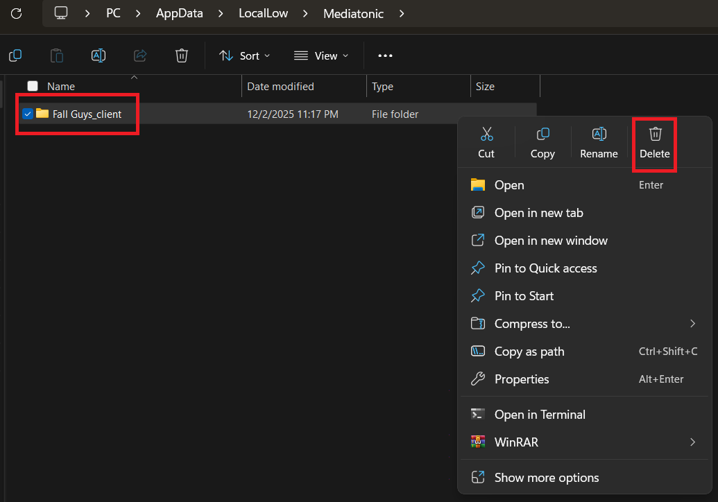 4. Delete Temporary Files and Registry Entries Related to Fall Guys