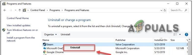 - Now right-click Steam and then click on Uninstall.
