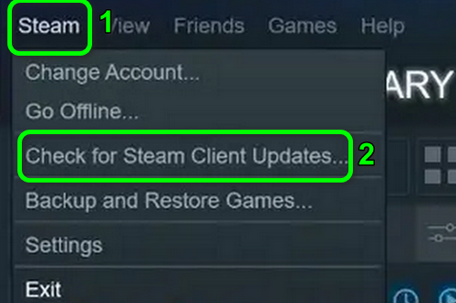 - Then click on Check for Steam Client Updates.