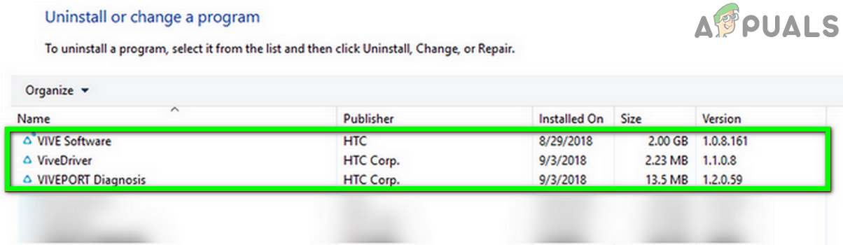 Uninstall a Program - Now select an HTC application, e.g. Vive Sofware, and then click on Uninstall.