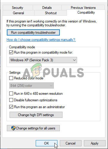 - Under the Compatibility mode section, check the box next to the Run this program in compatibility mode for option and choose Windows XP SP3 from the menu. Exit while accepting the changes.