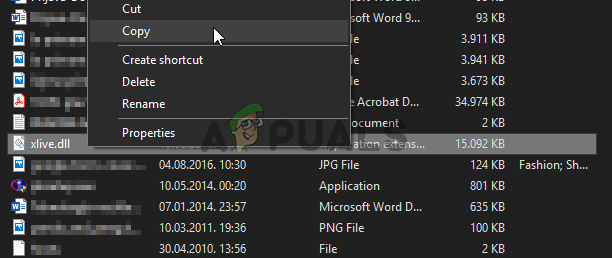- You should now be able to see an xlive.dll file. Right-click it and choose the Copy option from the context menu which will appear.