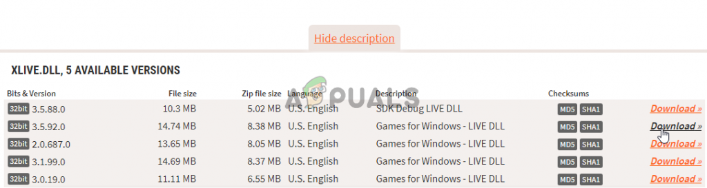- Visit this link in order to open a site where you can download the dll file. Scroll down to check out all available versions. We recommend you choose the 3.5.92.0 version with the Games for Windows – LIVE DLL description.