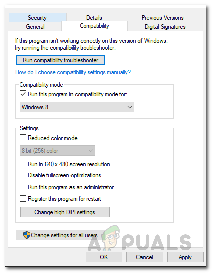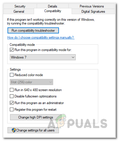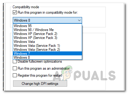 Enabling Compatibility Mode - After that, from the drop-down menu, choose Windows 7. In some cases, users have reported that Windows XP / ME worked for them so you can give that a try as well if Windows 7 doesn’t work for you.
