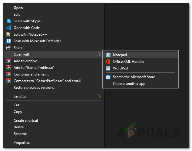 Opening up My Games Folder - Inside the Far Cry 3 folder, open up the GamerProfile.xml file with a notepad. To do this, right-click on the file and from the drop-down menu, choose Open with > Notepad.