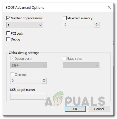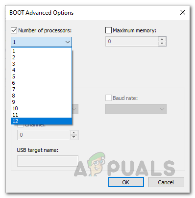 BOOT Advanced Options - Here, click the Number of processors checkbox and from the drop-down menu, choose a number that is under 15.