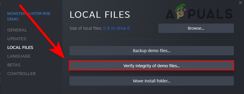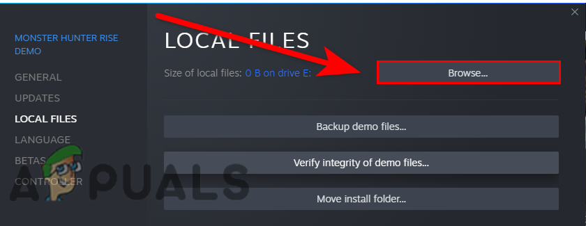 - Click on Local Files and the open game directory by clicking on the browse button.