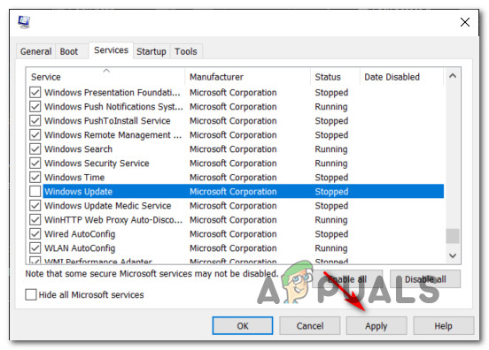 - When you manage to locate it, simply uncheck the box associated with Windows Update and click Apply to save the changes.