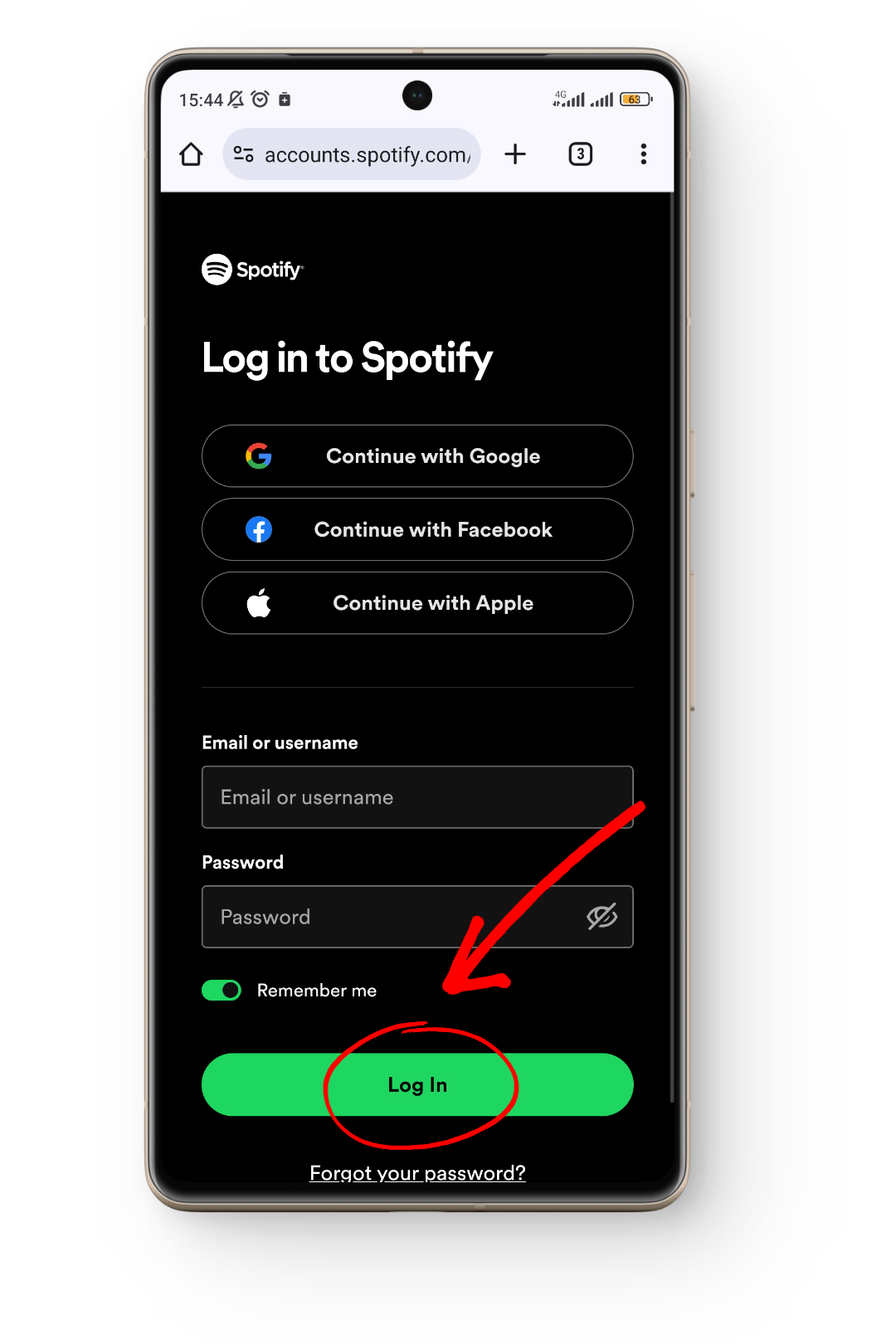 On any browser, go to Favorite Music Guru’s website. You’ll be redirected to Spotify’s account login page. Here, enter your Email Address and Password to log in.