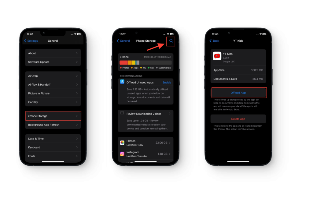 - Tap on iPhone Storage and find the Search icon in the top right corner.
