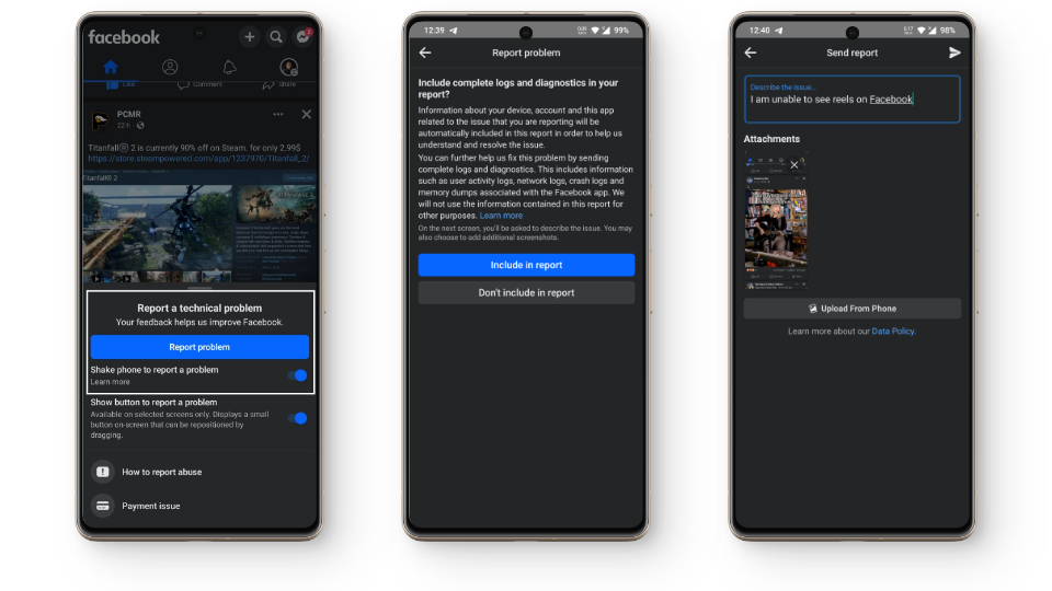 To report a glitch on your mobile device, shake your phone left and right. This action brings up a small menu—tap “Report Problem.” This automatically sends Meta a detailed report along with diagnostic information, making it easier for their team to identify and resolve the issue quickly.