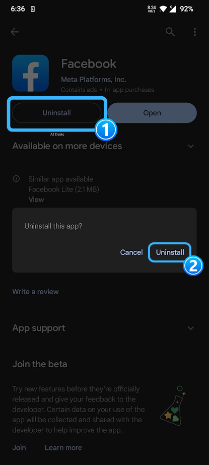 A fresh installation of the Facebook app often solves persistent problems such as Reels not loading. On iPhone, use the method above to delete Facebook, then reinstall it through the App Store. On Android, open the Play Store, search for Facebook, tap Uninstall and confirm your choice, then select Install to reinstall the app. Reinstalling removes any faulty components and provides an updated, fully functional version of the app.