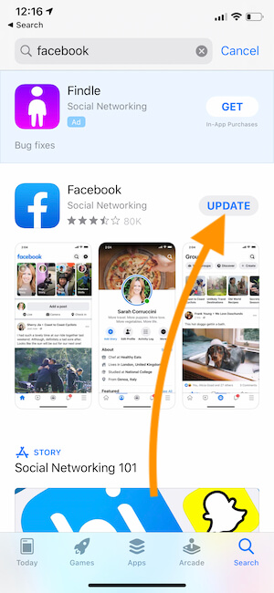 If an update is available, you will see an “Update” button. Download and install the update to ensure you are running the latest version, which often fixes bugs like Reels not working. If you use Facebook through a web browser on your computer, there is no need to update an app.