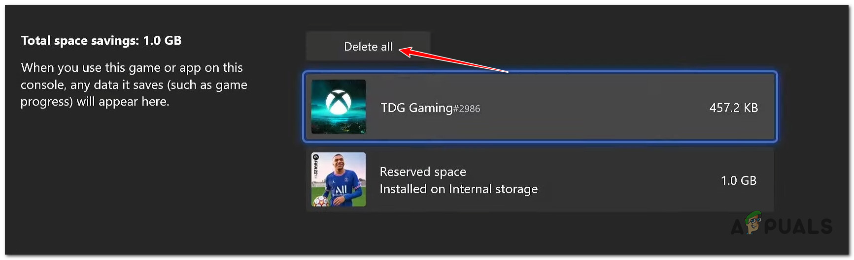 - From the FIFA 22 Saved data menu, hit Delete all, then confirm the operation and wait until the operation is complete.