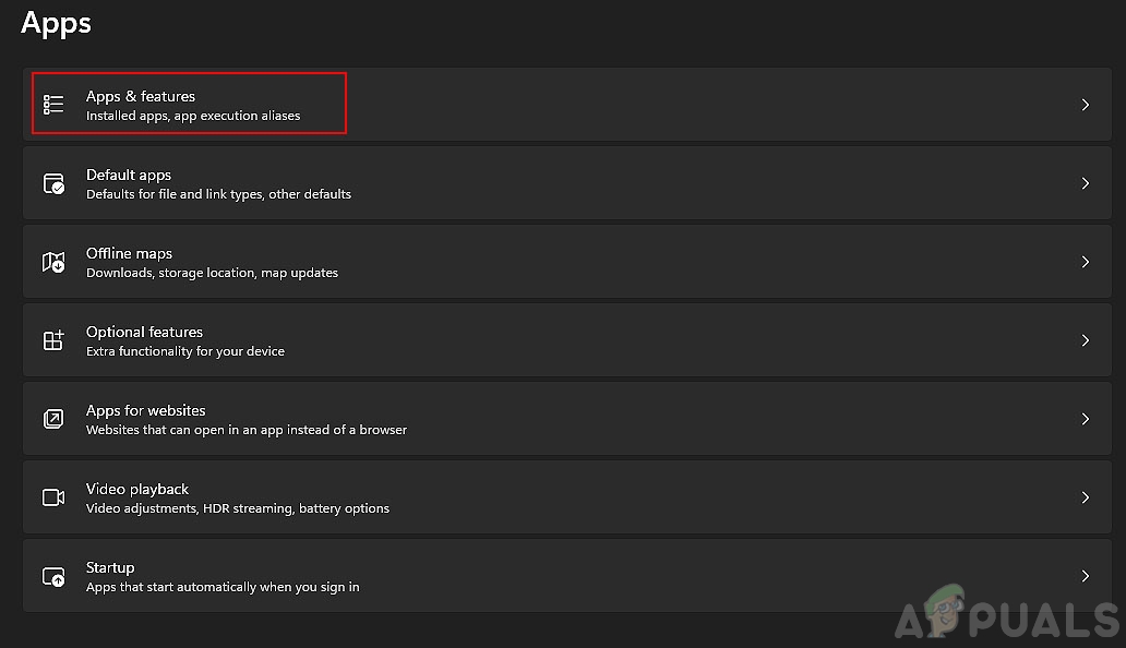 - Select the option App and Features Now from the list of applications installed click on FIFA22.