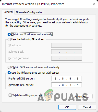 - Under that, provide the 8.8.8.8 and 8.8.4.4 addresses respectively.
