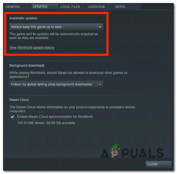 - Under Automatic updates, choose ‘Always keep this game updated’.