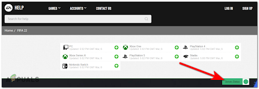 Another way to verify if the servers are down is to check the official EA site where you can see the server status for every platform that FIFA is available on. Access the page and click on the green button where it says Server Status to make the status visible.