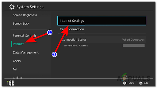 Accessing the Settings menu - Once you are inside the System Settings, navigate to the Internet section on the left side menu. After that, choose Internet Settings.