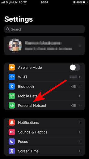 Accessing the Settings menu - Once you are inside the Settings menu, go to the Personal Hotspot section.