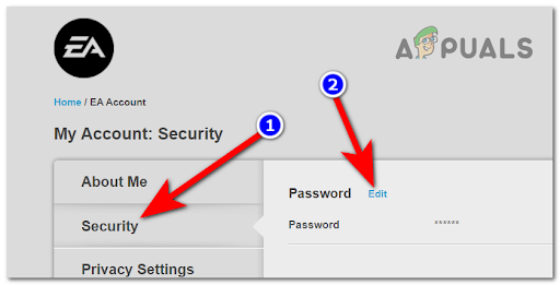 Edit on EA.com website - After you are on the EA site, you need to access the Security section, then click on the Edit button next to where it says Password.