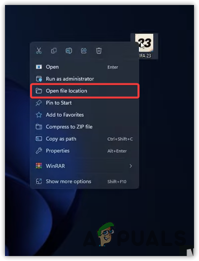 - Right-click the FIFA 23 shortcut and select ‘Open File Location’, or directly navigate to the FIFA installation folder.