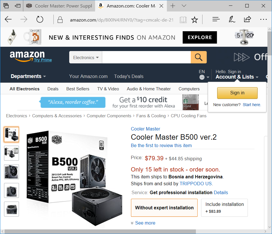 If you click on recommended PSU, Cooler Master B500 ver.2 PC-Netzteil (RS500-ACABB1-EU) – Available at Amazon, you will be redirected on Amazon website, where you can purchase PSU Cooler Master B500.