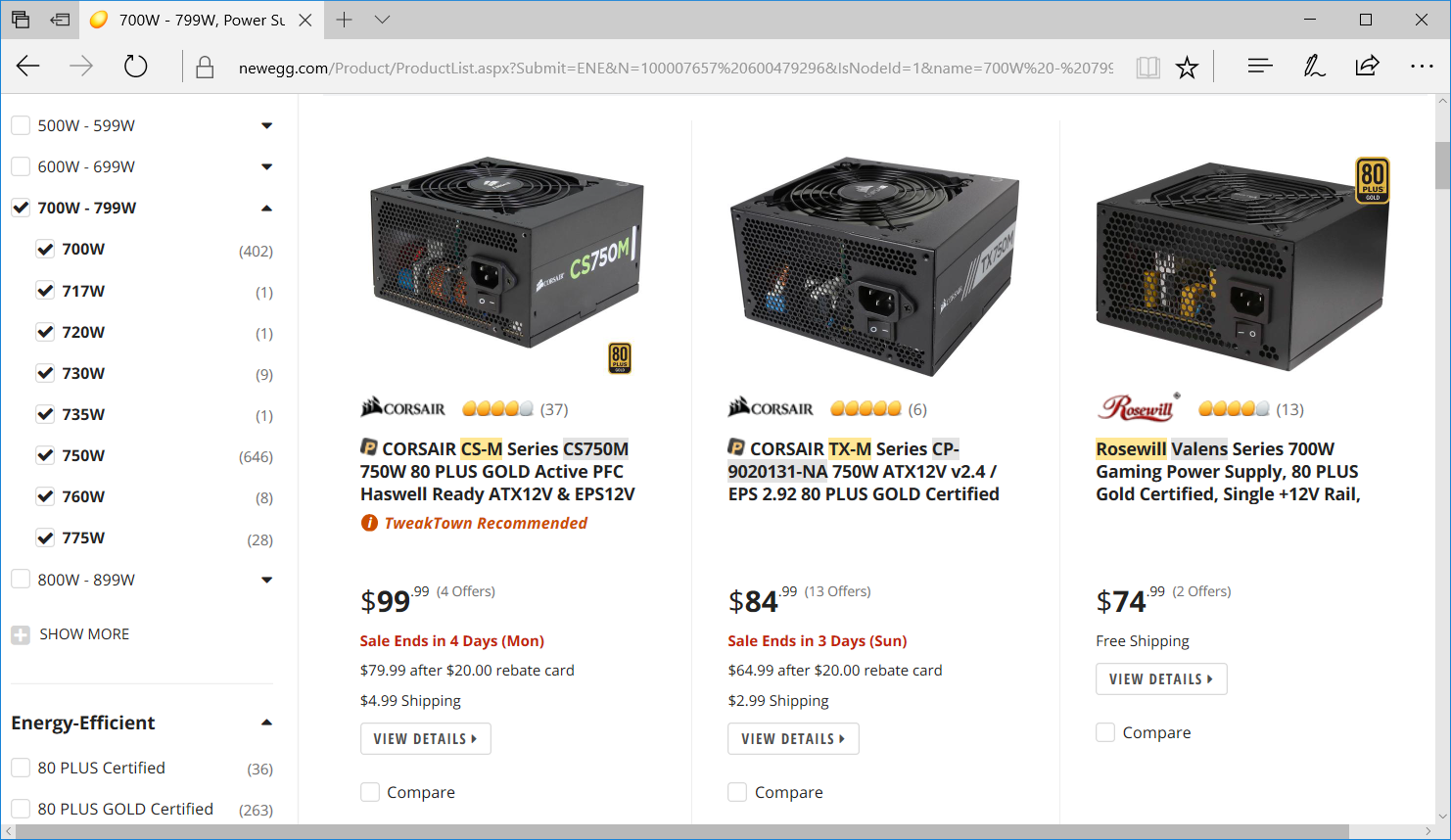 If you want to check prices or you want to purchase Newegg PSU, you need to click Find PSUs. You will be redirected to newegg’s webshop where you can purchase power supply.
