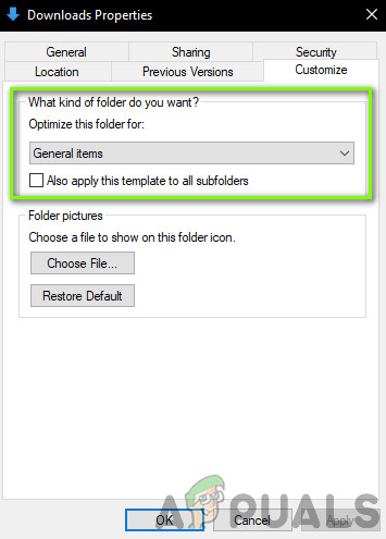 Customize this folder – Folder options - Under Optimize this folder, select General. Optionally, apply changes to all subfolders.