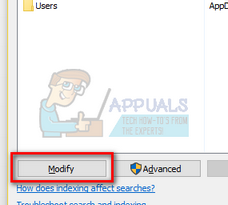 - Once the indexing options are opened, you will see a list of all indexed locations in front of you. If Windows is indexing the locations where the file explorer is becoming extremely slow, we can try disabling the indexing there. At the bottom left side of the screen, there will be a “Modify” button present. Click it.