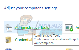- Press Windows + S button for the start menu’s search to come up. Type “administrative tools” in the dialogue box and hit enter. Click on the first result which pops up.