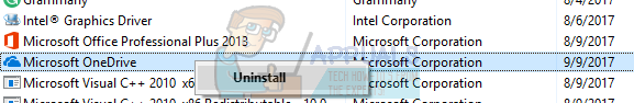 - Now Windows will list all the installed programs in front of you. Navigate through them until you find OneDrive. Right click it and select Uninstall.