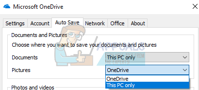- Now navigate to the Auto Save tab. Here under the subheading of Documents and Pictures, select “This PC only” option against the category of pictures and documents.