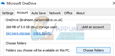- Now open your OneDrive settings again and navigate to the Account tab present at the top.