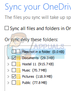 - A new window will pop up containing a list of the folders synced with OneDrive. Now uncheck all the boxes representing folders. Now save changes to the settings and exit.