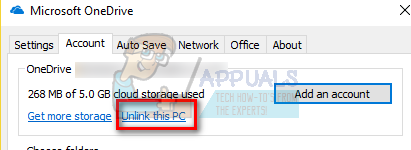 - Click on Unlink this PC present under the subheading of OneDrive. Save changes and exit the settings.