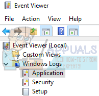 - Now click on Windows log present in the left side of the navigation pane. Now click on Application. This will view all the errors and messages regarding applications installed on your computer (including File Explorer).