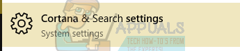 - Press Windows + S and write “Cortana settings”. Click on the first result which comes forward.