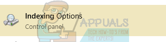 - Press Windows + S to launch your computer’s search bar in the start menu. Type “indexing” in the dialogue box and select the first record which comes in the result.