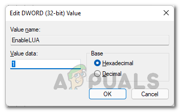 Changing ConsentPromptBehaviorAdmin Key Value - After that, double click the EnableLUA key and set its value to 0 as well. In case you are missing this key, you will have to create it by right-clicking New > DWORD (32-bit).