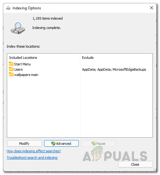 - Damaged Search Index — As it turns out, the problem can also be triggered by the search index that is used by Windows to fuel the search engine in the operating system. When this happens, you will have to rebuild the search index to resolve the problem.