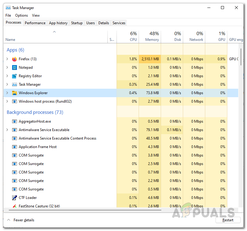 If this case is applicable, you will have to simply restart the process through the Task Manager window and then see if that resolves the problem for you. To do this, follow the instructions that are given down below: