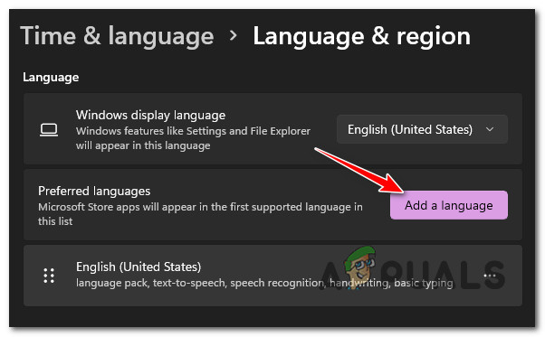 - Missing language pack dependencies – There are certain games available through the Game Pass that have a unique language pack dependency. This is typically true for simulator games such as Flight Simulator or Farm Simulator. To fix this problem, you need to install the English language pack from the Settings menu of your Windows installation.